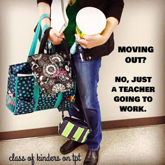 This one from Class of Kinders is on point. What do you carry to school? I literally use my car as an office. #truestory.