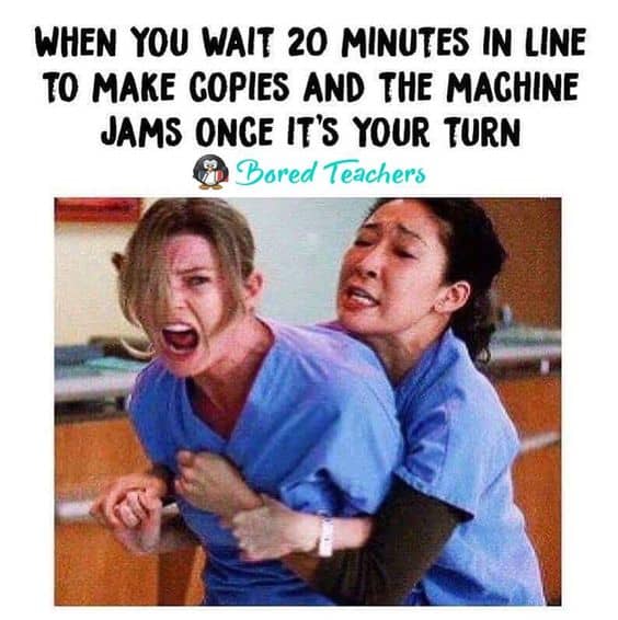 Um, YES. We actually have SO many copier problems that we now joke about ‘how many teachers are in the queue to use the copier’. Of all the Back to School Quotes we’ve read, this one is the #StoryofOurLives.