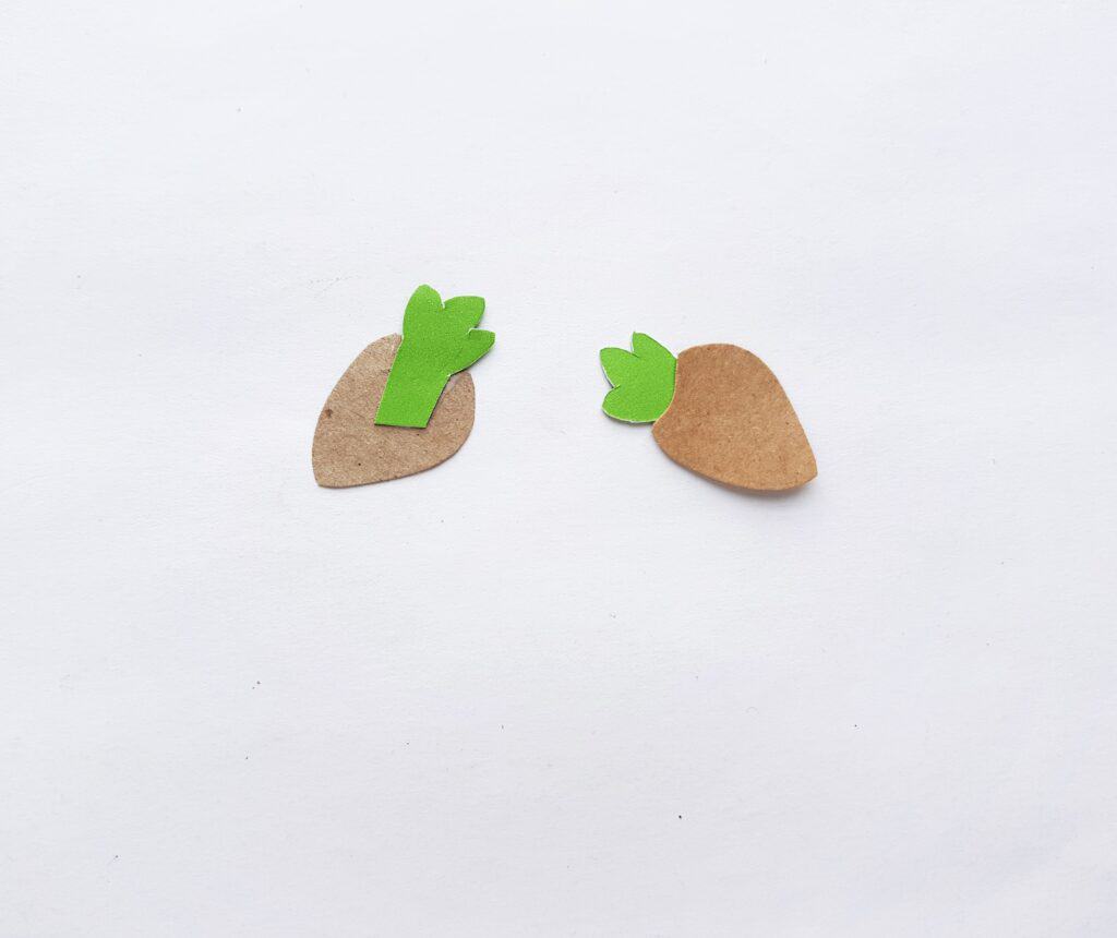 Trace the body and the 2 hand patterns on green colored craft paper, trace the clothe and the 2 hand parts of the clothes on brown colored craft paper,