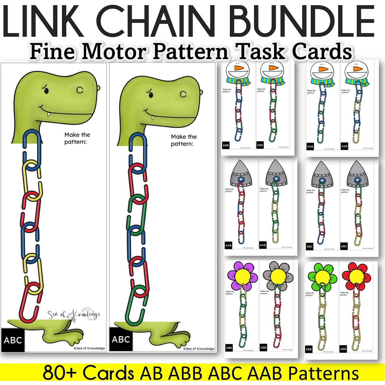 Designed as chain link patterns, these task cards make alphabet learning a hands-on adventure.
