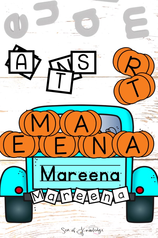 This fall name craft printable is perfect for preschool name crafts, kindergarten literacy centers, and editable fall activities for kids.
