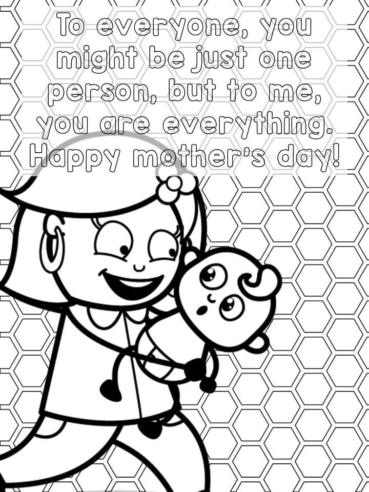 These mother’s day coloring pages feature sweet quotes like “Mom, you are the queen of my heart” and clipart of crowns, flowers, and hearts.