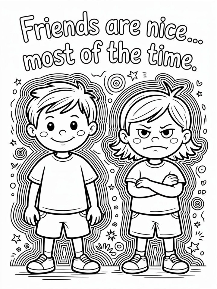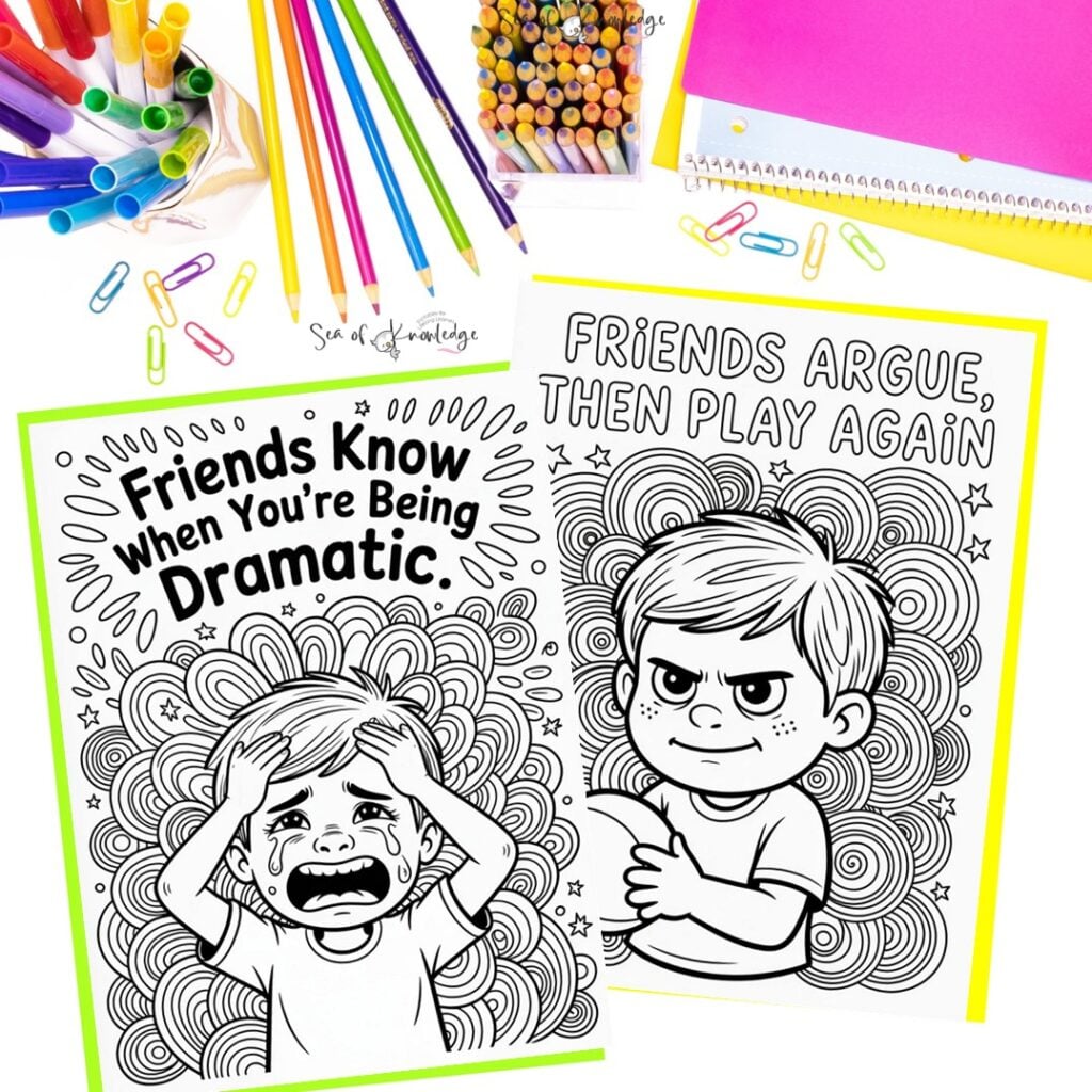 If you’ve ever watched kids work through friendship drama, you know this already — sometimes they don’t need a lecture or a few SEL coloring pages. They need a pencil, a laugh, and a minute to cool off.