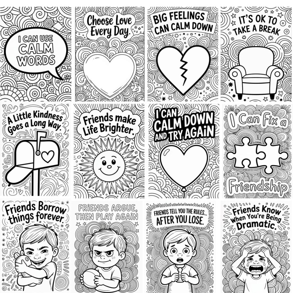 If you’re looking for social emotional learning coloring pages about friendship, this set is a simple, low-prep way to support emotional regulation, empathy, and peer relationships without turning it into a big thing.