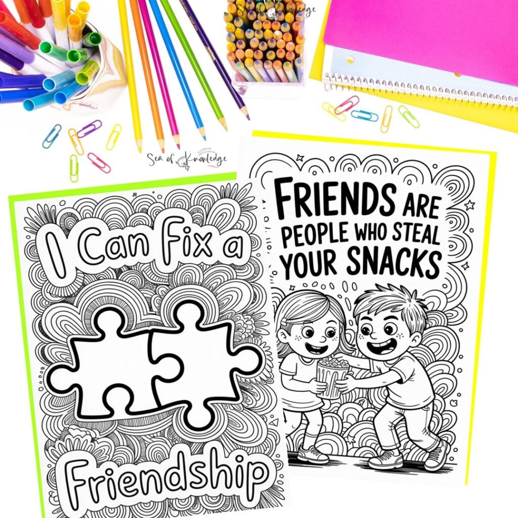 That’s exactly why I created these funny friendship SEL coloring pages.