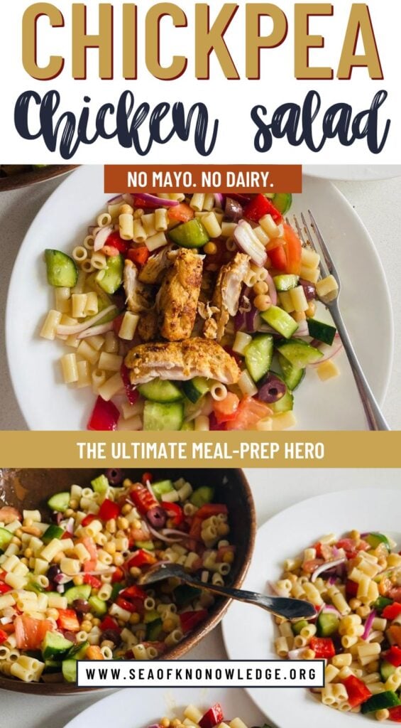 - Low-Carb Option: Swap the pasta for cauliflower florets or use zoodles (zucchini noodles) if you’re looking for a low-carb chickpea chicken salad.