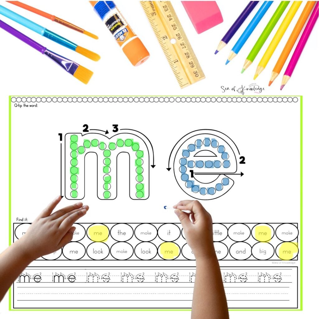 See these newly created a et of Q tip painting sight word templates, kids will q tip following the guide on each letter, then they will identify and read the words to find the sight word. They will then trace it!