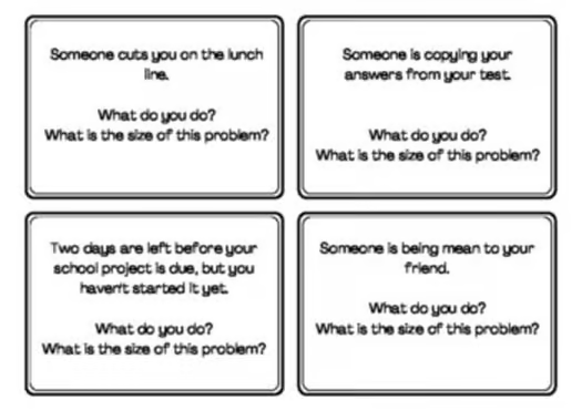 Sometimes a simple size of the problem visual is all it takes to remind kids that not every issue needs a big response. It’s a single anchor chart that ties the whole concept together.